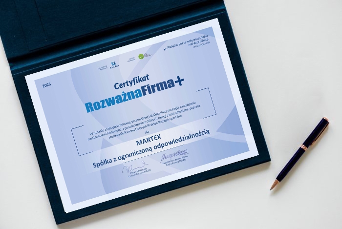 MARTEX OTRZYMAŁ CERTYFIKAT ROZWAŻNA FIRMA ZA ROK 2025.
