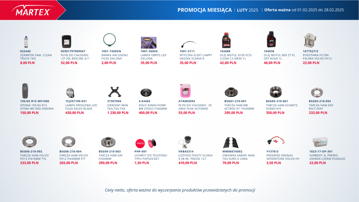 ZAPRASZAMY DO ZAPOZNANIA SIĘ I SKORZYSTANIA Z ATRAKCYJNEJ PROMOCJI MIESIĄCA NA WYBRANE PRODUKTY Z OFERTY MARTEX. PROMOCYJNE CENY NA TE PRODUKTY OBOWIĄZUJĄ DO 28 LUTEGO. SZCZEGÓŁY W INTERAKTYWNEJ ULOTCE PDF DO POBRANIA!