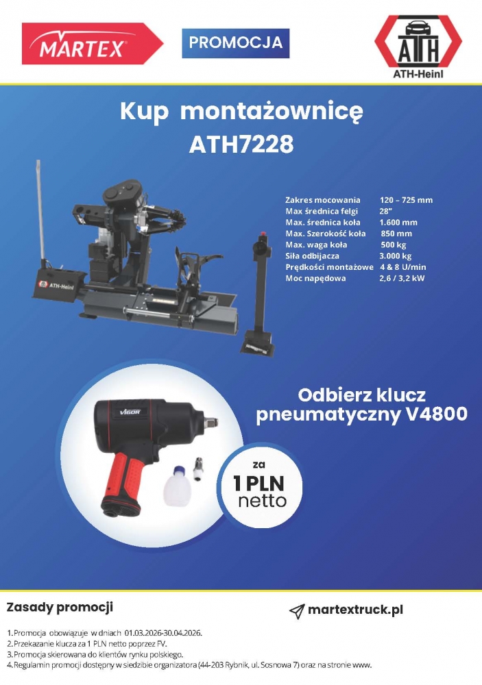 ATH - Kup montażownicę i odbierz klucz pneumayczny za 1 PLN netto!